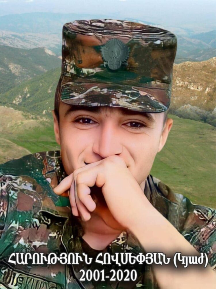 «Հարութից վեց ամիս առաջ էի եկել բանակ: Ես ու Հարութը նույն մարտկոցում էինք ծառայում, ես վարորդն էի: Հարութը շատ լավ հրետանավոր էր, լավ նշանառու: 2020 թվականի հոկտեմբերի 9-ին` ժամը մոտ 12։00-ին, հակառակորդի անօդաչու թռչող սարքը հրանոթի շառավիղով մեր տեղը հայտնաբերել էր: Հրթիռն ընկավ, հրանոթի հրամանատար Նարեկը տեղում զոհվեց, իսկ նշանառու Հարութը բեկորային վնասվածք ստացավ։ Հարութը ձախ կողմում էր ընկել, վիրավորվել էր գլխից: Միանգամից կապ տվեցինք: Հնարավորինս շուտ եկան ու տարան տղերքին, որից հետո էլ չտեսանք ու բան չիմացանք, մինչև…։ Դաժան պատերազմ էր»,-պատմում է Հարությունի մարտական ընկերը`Ռոբերտը ու շարունակում հիշել․ «Մի զրույցի ժամանակ Հարութն ինձ ասել էր, որ կարողանում է թմբուկ նվագել, որ լավ «սլուխ» ունի։ Երբ զորամասին թմբուկ հատկացրին, Հարութի անունը տվեցի` ասելով, որ մեր կյաժը կնվագի։ Ի դեպ՝ «Կյաժ» մականունը ես եմ դրել: Այդպես Հարութը դարձավ թմբկահար։ Ամեն երկուշաբթի հանդիսավոր երթով էին շարահրապարակ մտնում, ճաշարան թմբուկով էին գնում-գալիս, Հարութը շարքի դիմացից և՛ նվագում էր, և՛ երգում։ Սեպտեմբերի 26-ն էր` մեր խաղաղ մտքերի թերևս վերջին օրը։ Զորամասում ծածուկ լուրեր էին պտտվում, թե թշնամին պատրաստվում է հարձակման։ Անխոս տագնապ կար ամենքիս մեջ: Գիշերը, երբ բոլորս արդեն պառկել էինք քնելու, հավաքվել էինք իրար գլուխ, սակայն չկային մեր ամենօրյա շատախոսությունները, որոնցում, սովորաբար քննարկում էինք մեր անցած օրն ու առհասարակ՝ առօրյան։ Տարօրինակ լուռ էինք։ Զգացի, որ ձայն ու ծպտուն չկա։ Նույնիսկ մեր Հարութը` մեր կյաժը, որ մեզ միշտ ոգի տվողն էր, մեր ասող-խոսողը, մեր կատակասերը, ով միշտ ամեն բան համեմում էր իր քաղցր ու սրամիտ կատակներով, լուռ էր։ Բոլորս մտքով հասնում էինք տուն, մտովի գրկում մեզնից հեռու, բայց սրտով մեզ մոտ մարդկանց` մեկը ծնողին, մեկը սիրած աղջկան, մեկը քրոջը, մեկն էլ, ո՞վ իմանա, գուցե մտածում էր, թե ինչպե՞ս մտքերը շարադրի ու ասի, որ սիրում է: Բայց ամենքիս գլխում տիրապետող միտքը մեկն էր…։ Տագնապ կար, քանի որ լավ էինք ճանաչում մեր նենգ թշնամուն։ Սպասում էի, որ հենց մեր Հարութը կկոտրի այդ քար լռությունը՝ իր բարի խոսքով ու քաղցր լեզվով, իր հումորներով ու կատակներով և չզարմացա, երբ ասաց․«Տղե՛րք, վա՜յ մի հատ զգա՛ստ, է՜հ, ասում եմ զգաստ, ազա՛տ։ Էս ի՞նչ լռություն ա, կարո՞ղ ա էդ ճիվաղ թուրքերից վախեցաք, ես ստեղ, թուրքերը ո՞նց ռիսկ կանեն կրակեն»։